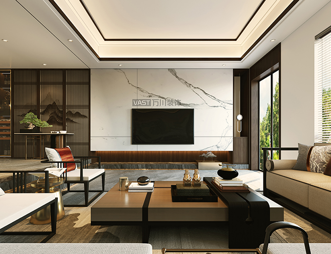 新中式既提煉了古典元素中的精髓,又與現(xiàn)代潮流發(fā)生碰撞,讓空間剔除繁雜、告別沉悶,處處散發(fā)著簡(jiǎn)潔優(yōu)雅、唯美大氣的層次之美