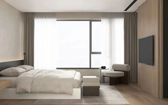 仍然要遠(yuǎn)大于飄窗的長度,當(dāng)兩片窗簾閉合時,中間才不會存在空隙,還有一種就是高度尺寸過小的窗簾,其底部未著地,光也會從底部滲透進(jìn)來。