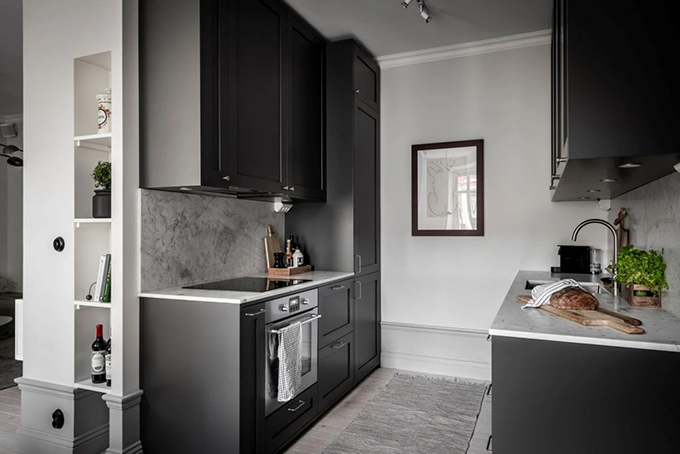 這種做法就是化劣勢為優(yōu)勢的典型了,在空間中如果有的墻面是不規(guī)則的形態(tài),要么就把多余的墻體敲掉,使其恢復(fù)成規(guī)則的狀態(tài),或者就是加以利用,讓此處空間滿足收納功能,比如空間中有的夾縫的區(qū)域,可以設(shè)置隔板,把這個(gè)夾縫區(qū)域改造成壁龕,得以充分的利用。