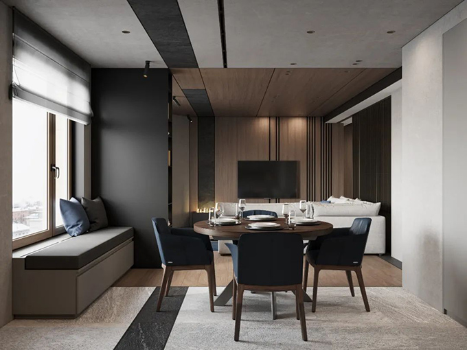 復(fù)式分為一層和夾層兩層樓的空間,設(shè)計(jì)師在做功能分區(qū)的時(shí)候,使用體驗(yàn)是放在第一位,在日常一些功能的使用需求中,上下樓的體驗(yàn)是否便捷,動線是否繁瑣,一般來說,空間的動區(qū)像客餐廳,休閑娛樂區(qū)域,一般都會設(shè)置在一層,而書房臥室等靜區(qū)通常設(shè)置在夾層,通過樓板進(jìn)行動靜分區(qū)的設(shè)置,滿足日常生活居住方便快捷的體驗(yàn)。